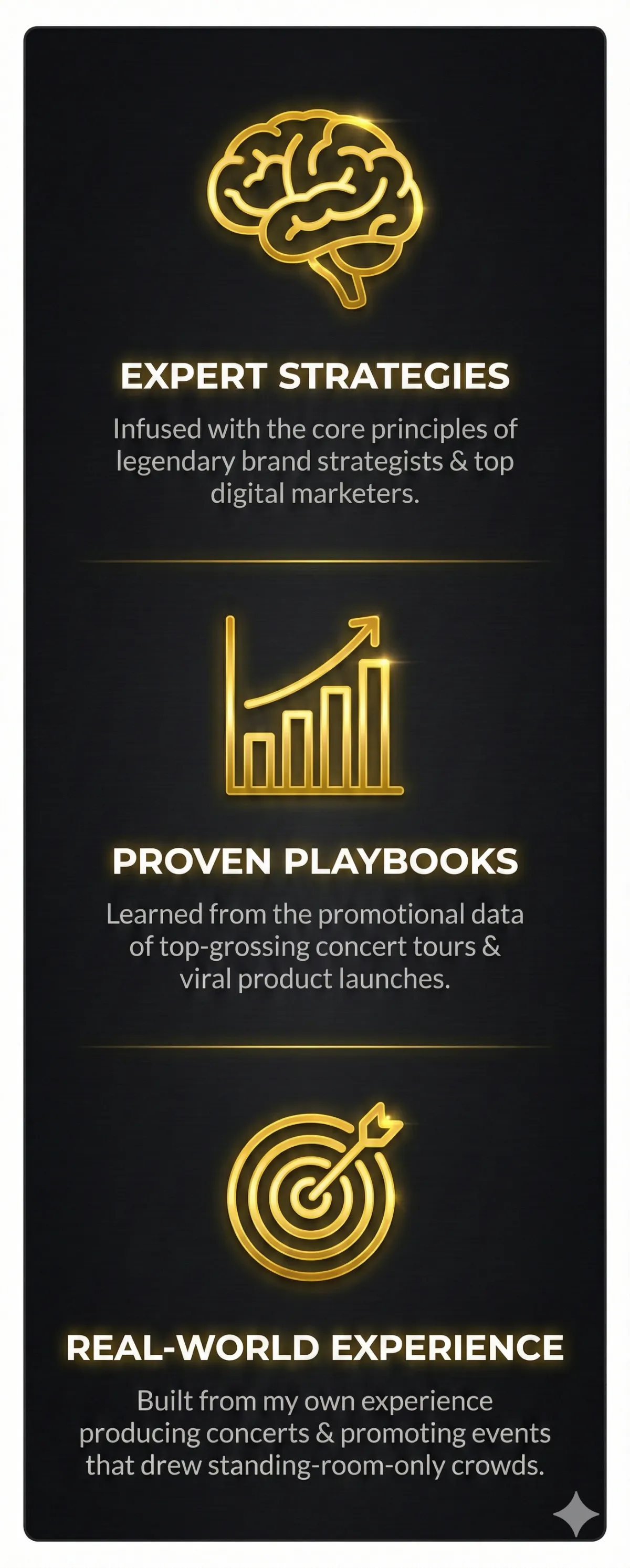 • Years of In-the-Trenches Experience: My own playbook from years of seeing both sides of the curtain—from producing my own successful concert to promoting events that drew standing-room-only crowds—is built into the DNA of this tool.